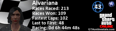 [URL=http://GTAonlinestats.com/showplayer/Alvariana][IMG]http://GTAonlinestats.com/racesignature/Alvariana/sig.png[/IMG][/URL]