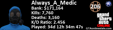 <a href="http://GTAonlinestats.com/showplayer/Always_A_Medic"><img src="http://GTAonlinestats.com/greysignature/Always_A_Medic/sig.png" alt="Always_A_Medic" border="0" /></a>