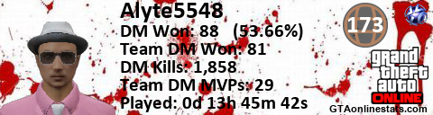[URL=http://GTAonlinestats.com/showplayer/Alyte5548][IMG]http://GTAonlinestats.com/dmsignature/Alyte5548/sig.png[/IMG][/URL]