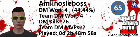 [URL=http://GTAonlinestats.com/showplayer/Amiinosleboss][IMG]http://GTAonlinestats.com/dmsignature/Amiinosleboss/sig.png[/IMG][/URL]