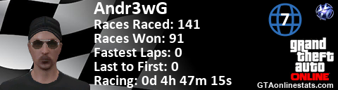 [URL=http://GTAonlinestats.com/showplayer/Andr3wG/2][IMG]http://GTAonlinestats.com/racesignature/Andr3wG/2/sig.png[/IMG][/URL]