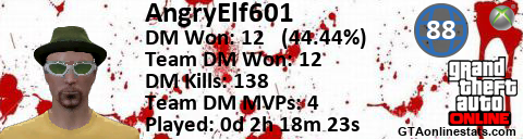 [URL=http://GTAonlinestats.com/showplayer/AngryElf601][IMG]http://GTAonlinestats.com/dmsignature/AngryElf601/sig.png[/IMG][/URL]