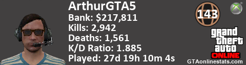 [URL=http://GTAonlinestats.com/showplayer/ArthurGTA5/2][IMG]http://GTAonlinestats.com/signature/ArthurGTA5/2/sig.png[/IMG][/URL]