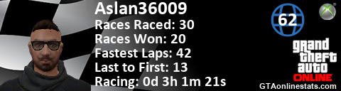 <a href="http://GTAonlinestats.com/showplayer/Aslan36009"><img src="http://GTAonlinestats.com/racesignature/Aslan36009/sig.png" alt="Aslan36009" border="0" /></a>