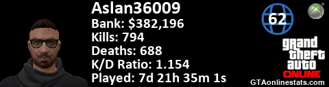 [URL=http://GTAonlinestats.com/showplayer/Aslan36009][IMG]http://GTAonlinestats.com/signature/Aslan36009/sig.png[/IMG][/URL]