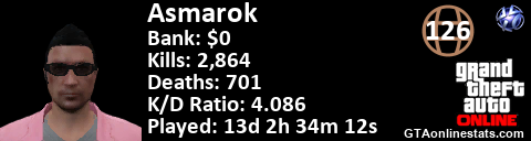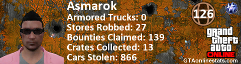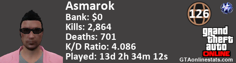 [URL=http://GTAonlinestats.com/showplayer/Asmarok][IMG]http://GTAonlinestats.com/dmsignature/Asmarok/sig.png[/IMG][/URL]