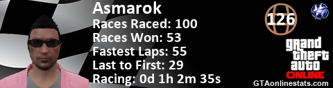 [URL=http://GTAonlinestats.com/showplayer/Asmarok][IMG]http://GTAonlinestats.com/racesignature/Asmarok/sig.png[/IMG][/URL]
