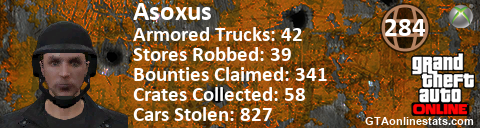 [URL=http://GTAonlinestats.com/showplayer/Asoxus][IMG]http://GTAonlinestats.com/crimesignature/Asoxus/sig.png[/IMG][/URL]