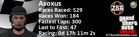 [URL=http://GTAonlinestats.com/showplayer/Asoxus][IMG]http://GTAonlinestats.com/racesignature/Asoxus/sig.png[/IMG][/URL]