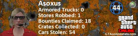 [URL=http://GTAonlinestats.com/showplayer/Asoxus/2][IMG]http://GTAonlinestats.com/crimesignature/Asoxus/2/sig.png[/IMG][/URL]