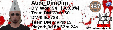 [URL=http://GTAonlinestats.com/showplayer/Audi_DimDim/2][IMG]http://GTAonlinestats.com/dmsignature/Audi_DimDim/2/sig.png[/IMG][/URL]