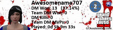 [URL=http://GTAonlinestats.com/showplayer/Awesomename707/2][IMG]http://GTAonlinestats.com/dmsignature/Awesomename707/2/sig.png[/IMG][/URL]