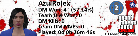 [URL=http://GTAonlinestats.com/showplayer/AzulRolex/2][IMG]http://GTAonlinestats.com/dmsignature/AzulRolex/2/sig.png[/IMG][/URL]