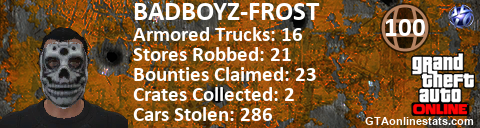 [URL=http://GTAonlinestats.com/showplayer/BADBOYZ-FROST][IMG]http://GTAonlinestats.com/crimesignature/BADBOYZ-FROST/sig.png[/IMG][/URL]