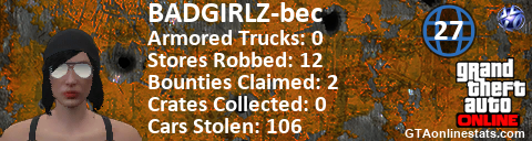 [URL=http://GTAonlinestats.com/showplayer/BADGIRLZ-bec][IMG]http://GTAonlinestats.com/signature/BADGIRLZ-bec/sig.png[/IMG][/URL]