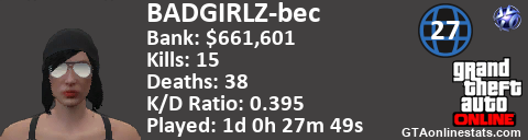 <a href="http://GTAonlinestats.com/showplayer/BADGIRLZ-bec"><img src="http://GTAonlinestats.com/dmsignature/BADGIRLZ-bec/sig.png" alt="BADGIRLZ-bec" border="0" /></a>
