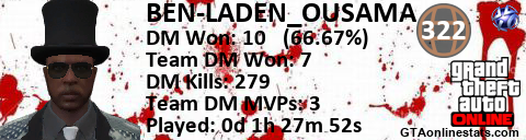 [URL=http://GTAonlinestats.com/showplayer/BEN-LADEN_OUSAMA][IMG]http://GTAonlinestats.com/dmsignature/BEN-LADEN_OUSAMA/sig.png[/IMG][/URL]