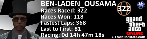 <a href="http://GTAonlinestats.com/showplayer/BEN-LADEN_OUSAMA"><img src="http://GTAonlinestats.com/racesignature/BEN-LADEN_OUSAMA/sig.png" alt="BEN-LADEN_OUSAMA" border="0" /></a>