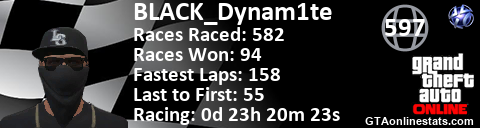 [URL=http://GTAonlinestats.com/showplayer/BLACK_Dynam1te][IMG]http://GTAonlinestats.com/racesignature/BLACK_Dynam1te/sig.png[/IMG][/URL]