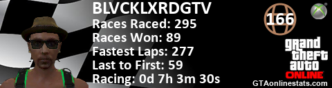 <a href="http://GTAonlinestats.com/showplayer/BLVCKLXRDGTV"><img src="http://GTAonlinestats.com/racesignature/BLVCKLXRDGTV/sig.png" alt="BLVCKLXRDGTV" border="0" /></a>