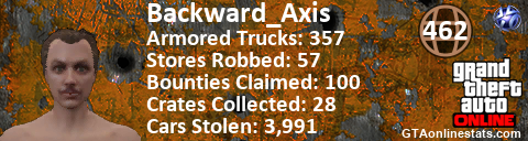[URL=http://GTAonlinestats.com/showplayer/Backward_Axis][IMG]http://GTAonlinestats.com/randomsignature/Backward_Axis/sig.png[/IMG][/URL]