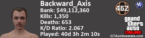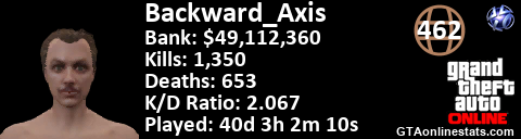 <a href="http://GTAonlinestats.com/showplayer/Backward_Axis"><img src="http://GTAonlinestats.com/signature/Backward_Axis/sig.png" alt="Backward_Axis" border="0" /></a>