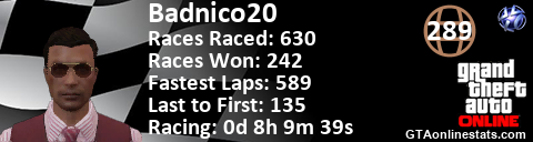 <a href="http://GTAonlinestats.com/showplayer/Badnico20"><img src="http://GTAonlinestats.com/racesignature/Badnico20/sig.png" alt="Badnico20" border="0" /></a>
