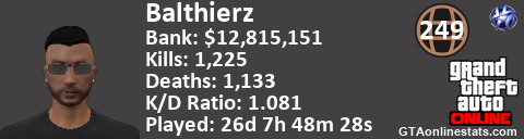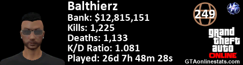 [URL=http://GTAonlinestats.com/showplayer/Balthierz][IMG]http://GTAonlinestats.com/greysignature/Balthierz/sig.png[/IMG][/URL]