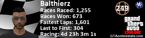 [URL=http://GTAonlinestats.com/showplayer/Balthierz][IMG]http://GTAonlinestats.com/racesignature/Balthierz/sig.png[/IMG][/URL]