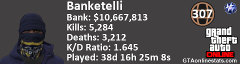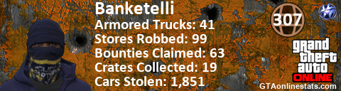 <a href="http://GTAonlinestats.com/showplayer/Banketelli"><img src="http://GTAonlinestats.com/randomsignature/Banketelli/sig.png" alt="Banketelli" border="0" /></a>