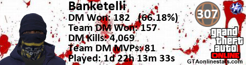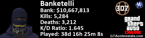 [URL=http://GTAonlinestats.com/showplayer/Banketelli][IMG]http://GTAonlinestats.com/dmsignature/Banketelli/sig.png[/IMG][/URL]