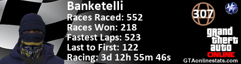 <a href="http://GTAonlinestats.com/showplayer/Banketelli"><img src="http://GTAonlinestats.com/racesignature/Banketelli/sig.png" alt="Banketelli" border="0" /></a>