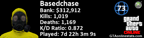 <a href="http://GTAonlinestats.com/showplayer/Basedchase"><img src="http://GTAonlinestats.com/signature/Basedchase/sig.png" alt="Basedchase" border="0" /></a>