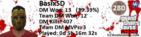 <a href="http://GTAonlinestats.com/showplayer/BasixSD"><img src="http://GTAonlinestats.com/randomsignature/BasixSD/sig.png" alt="BasixSD" border="0" /></a>