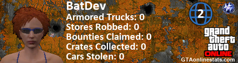 [URL=http://GTAonlinestats.com/showplayer/BatDev/2][IMG]http://GTAonlinestats.com/crimesignature/BatDev/2/sig.png[/IMG][/URL]