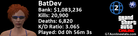 [URL=http://GTAonlinestats.com/showplayer/BatDev/2][IMG]http://GTAonlinestats.com/greysignature/BatDev/2/sig.png[/IMG][/URL]