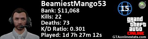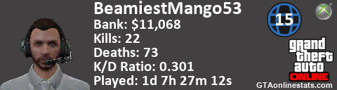 <a href="http://GTAonlinestats.com/showplayer/BeamiestMango53"><img src="http://GTAonlinestats.com/signature/BeamiestMango53/sig.png" alt="BeamiestMango53" border="0" /></a>