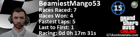 <a href="http://GTAonlinestats.com/showplayer/BeamiestMango53"><img src="http://GTAonlinestats.com/racesignature/BeamiestMango53/sig.png" alt="BeamiestMango53" border="0" /></a>