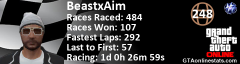 <a href="http://GTAonlinestats.com/showplayer/BeastxAim"><img src="http://GTAonlinestats.com/racesignature/BeastxAim/sig.png" alt="BeastxAim" border="0" /></a>