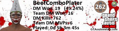 [URL=http://GTAonlinestats.com/showplayer/BeefComboPlater][IMG]http://GTAonlinestats.com/dmsignature/BeefComboPlater/sig.png[/IMG][/URL]