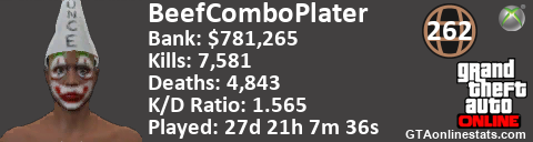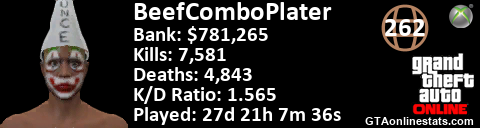 [URL=http://GTAonlinestats.com/showplayer/BeefComboPlater][IMG]http://GTAonlinestats.com/randomsignature/BeefComboPlater/sig.png[/IMG][/URL]
