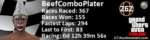 [URL=http://GTAonlinestats.com/showplayer/BeefComboPlater][IMG]http://GTAonlinestats.com/racesignature/BeefComboPlater/sig.png[/IMG][/URL]