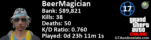 [URL=http://GTAonlinestats.com/showplayer/BeerMagician][IMG]http://GTAonlinestats.com/signature/BeerMagician/sig.png[/IMG][/URL]