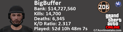 <a href="http://GTAonlinestats.com/showplayer/BigBuffer"><img src="http://GTAonlinestats.com/signature/BigBuffer/sig.png" alt="BigBuffer" border="0" /></a>