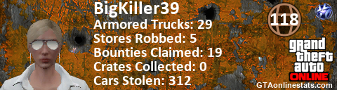 [URL=http://GTAonlinestats.com/showplayer/BigKiller39][IMG]http://GTAonlinestats.com/crimesignature/BigKiller39/sig.png[/IMG][/URL]