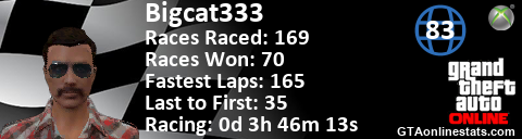 [URL=http://GTAonlinestats.com/showplayer/Bigcat333][IMG]http://GTAonlinestats.com/racesignature/Bigcat333/sig.png[/IMG][/URL]