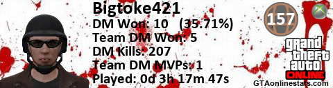 <a href="http://GTAonlinestats.com/showplayer/Bigtoke421"><img src="http://GTAonlinestats.com/dmsignature/Bigtoke421/sig.png" alt="Bigtoke421" border="0" /></a>