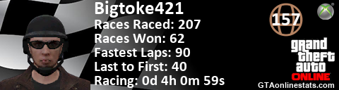 <a href="http://GTAonlinestats.com/showplayer/Bigtoke421"><img src="http://GTAonlinestats.com/racesignature/Bigtoke421/sig.png" alt="Bigtoke421" border="0" /></a>