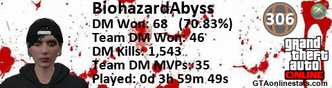 [URL=http://GTAonlinestats.com/showplayer/BiohazardAbyss][IMG]http://GTAonlinestats.com/dmsignature/BiohazardAbyss/sig.png[/IMG][/URL]