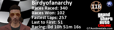 [URL=http://GTAonlinestats.com/showplayer/Birdyofanarchy][IMG]http://GTAonlinestats.com/racesignature/Birdyofanarchy/sig.png[/IMG][/URL]